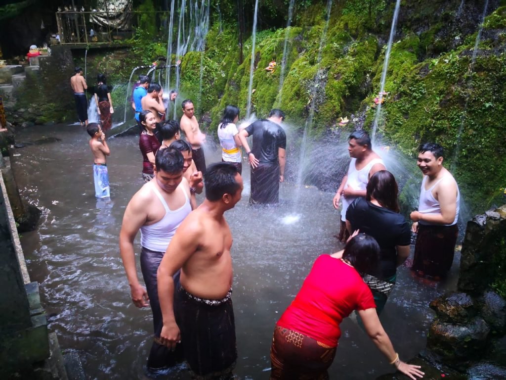Usai melukat di sebelas mata air, wisatawan akan diberikan bija (red : sarana upacara berupa beras yang telai diberikan doa) dan dipercikan tirta oleh pemangku (red : pemuka Agama Hindu) di Pura Tirta Sudamala.