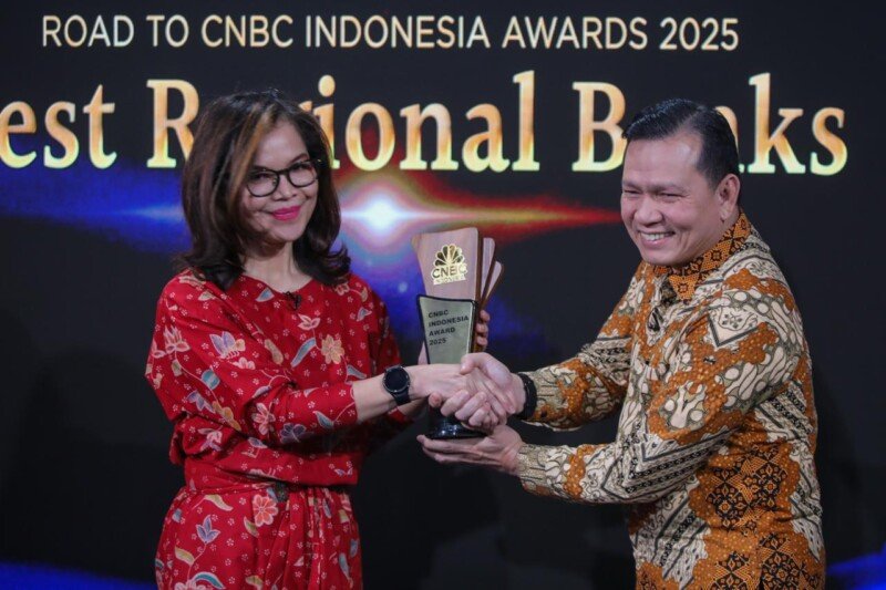 JAKARTA,BERITAMONETER.COM – Bank Jakarta menerima penghargaan Regional Banking ESG Excellence Awards atas kontribusinya dalam pertumbuhan ekonomi di DKI Jakarta dan Nasional melalui dukungan pada sektor UMKM, serta pemberdayaan komunitas pada ajang Road to CNBC Indonesia Awards di Jakarta, Kamis (16/10/2025).