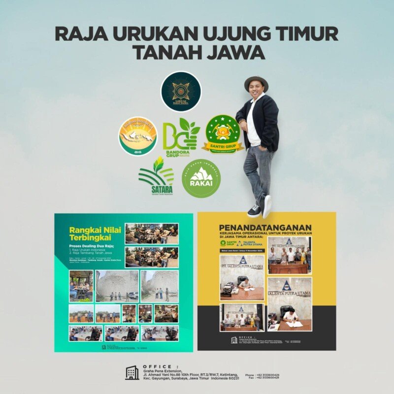 JAKARTA,BERITAMONETER,COM – Lima induk perusahaan besar yang membawahi ratusan tambang di Jawa Timur resmi menunjuk Santri Grup sebagai kontraktor utama untuk seluruh aktivitas penambangan.