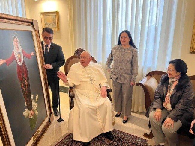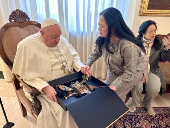 “Paus terlihat sangat senang mendapatkan cindera mata tersebut dan mengucapkan terima kasih kepada Ibu Megawati dan Mbak Puan Maharani,” kata Basarah.
