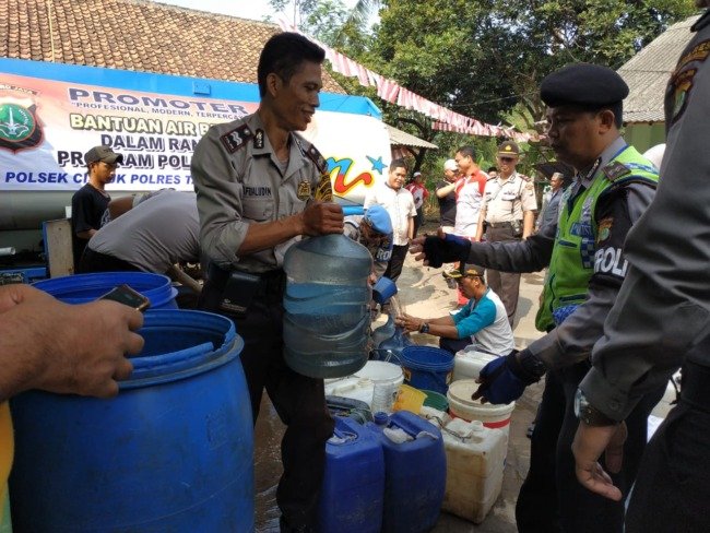 Kapolsek Cisauk AKP Fredy Yudha Satria menerangkan, bantuan air bersih kepada masyarakat kampung Koceak ini diinisiasi oleh Bhayangkari Polsek Cisauk. Dengan menyiapkan satu tangki air bersih berisi 16ribu liter.